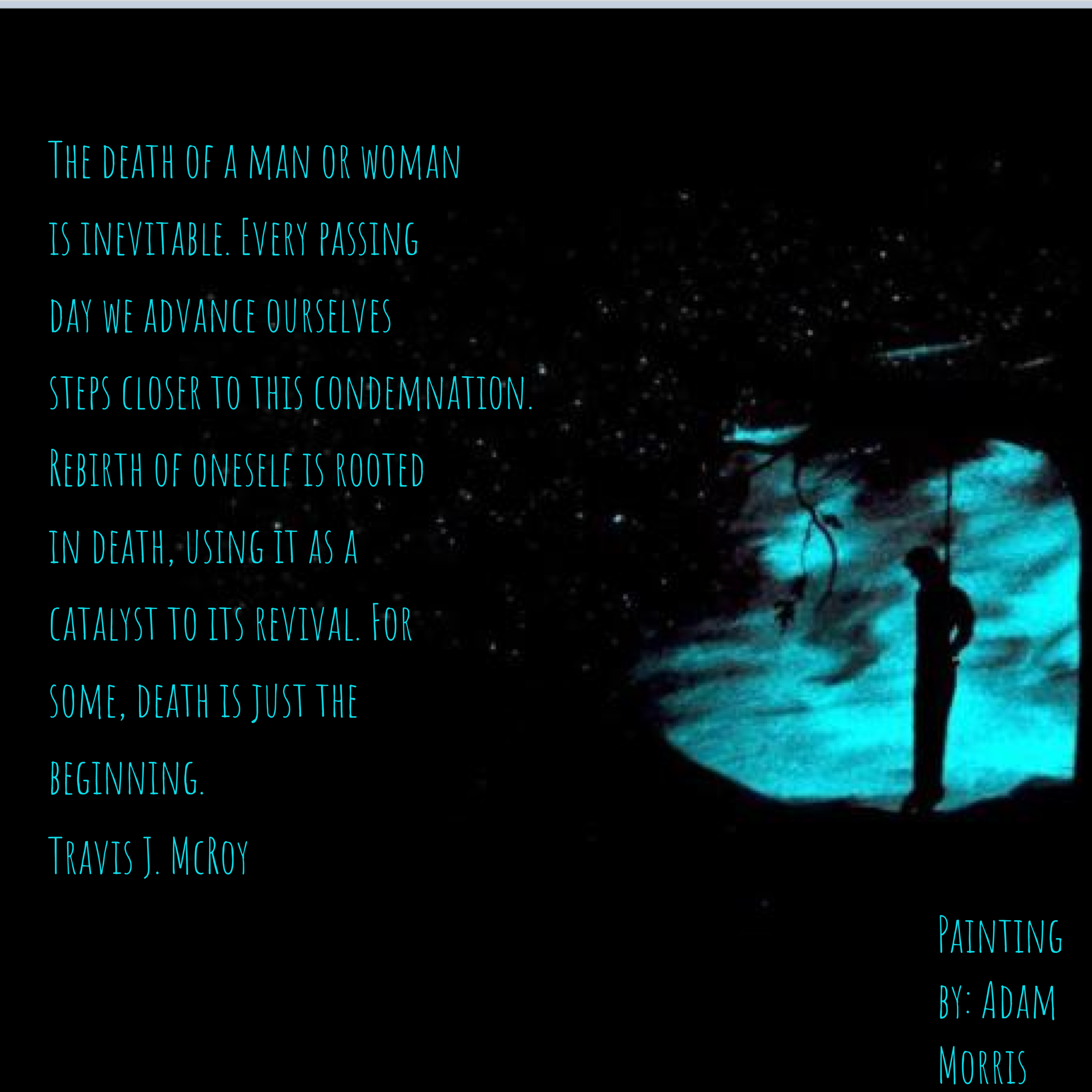 Quotes/Poems Copyright © 2020 by Travis J. McRoyAll rights reserved. Share this: Share on X (Opens in new window) X Share on Facebook (Opens in new window) Facebook Like Loading...